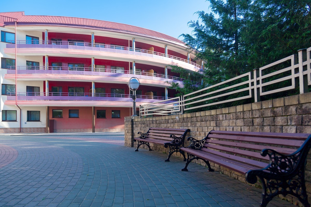 Вся инфраструктура находится в одном здании, чтобы попасть из лечебного отделения в жилое или в столовую, не нужно перемещаться по улице.