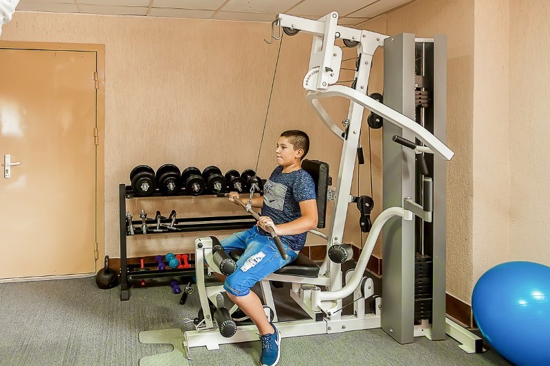 В санатории все предусмотрено для активного отдыха: спортивный, тренажерный, бильярдный залы, открытый теннисный корт, площадка для пляжного волейбола, детский городок, а также обустроенный пляж с кабинками для переодевания и лежаками и лодочная станция.