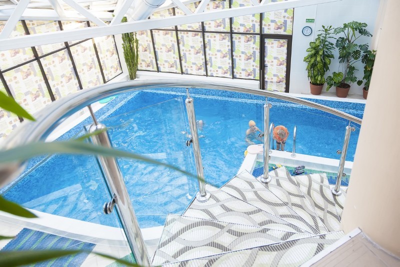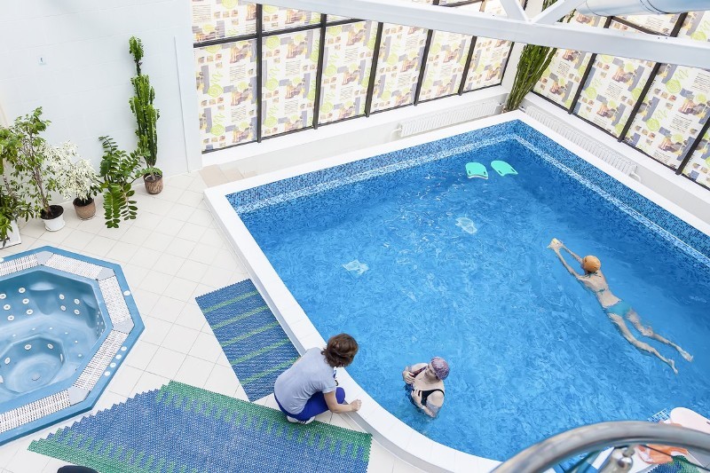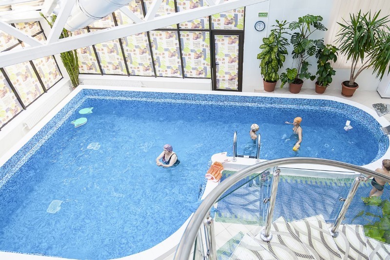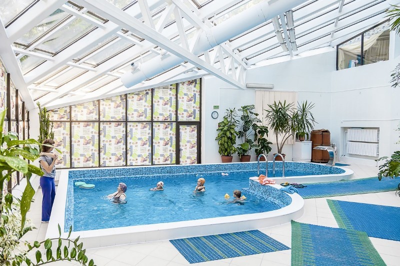 В санатории в главном корпусе имеется бассейн, который подходит для плавания и для проведения аквааэробики. Размер бассейна 35 м², имеются также джакузи, каскад, пушки.