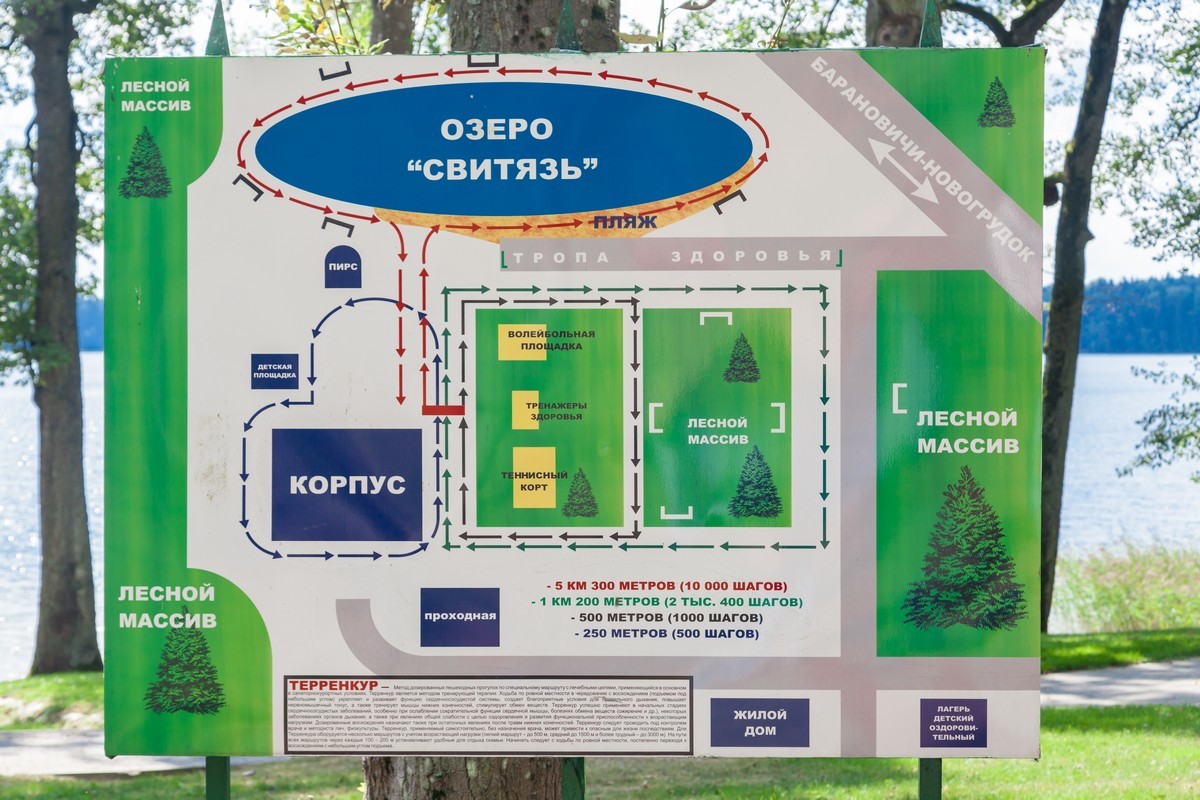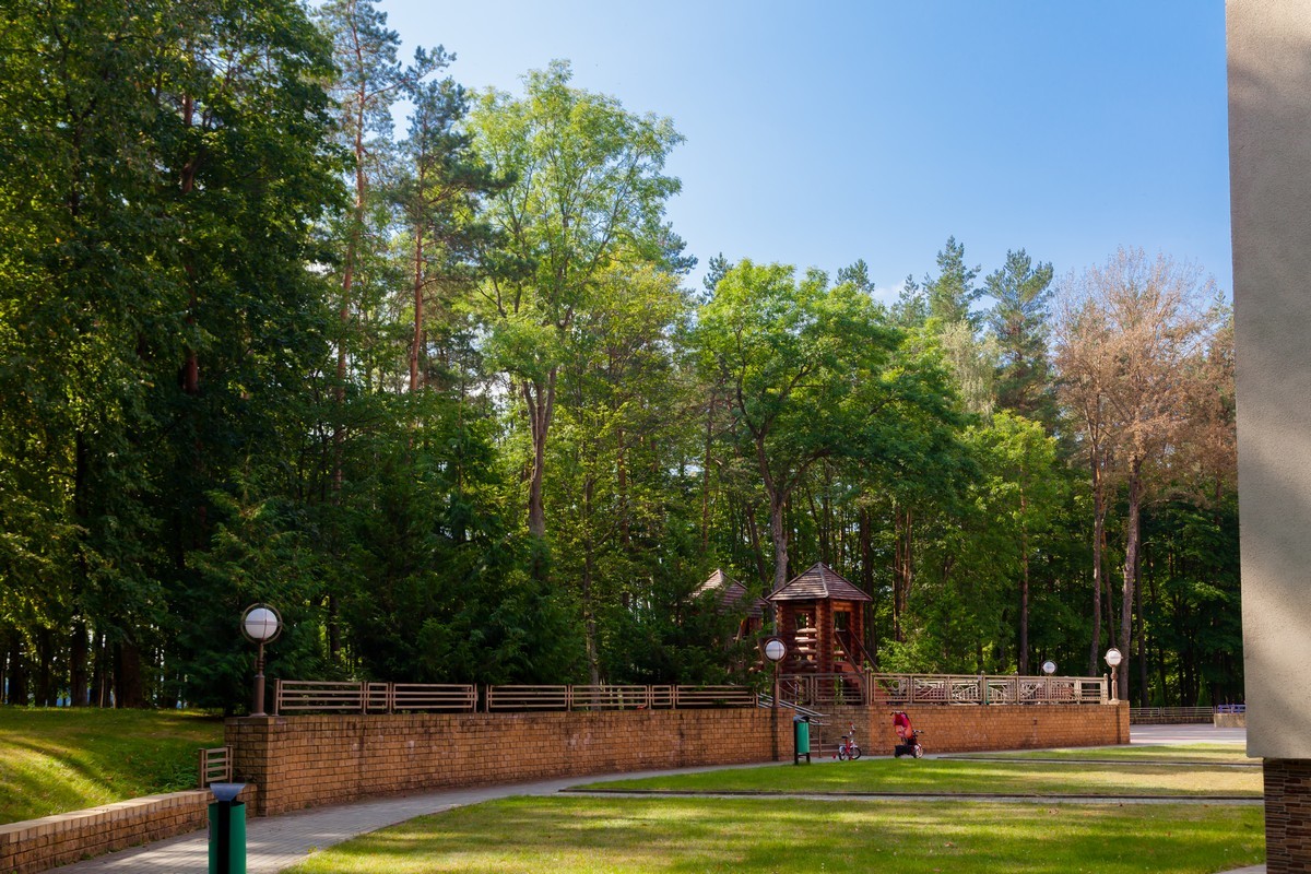 Санаторий расположен в смешанном хвойно-лиственном лесу, на берегу озера Свитязь, расстояние от корпуса до озера 100 м.